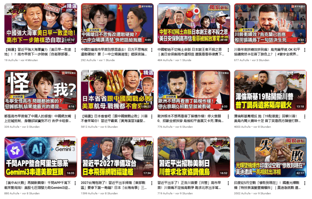 Für Interessierte: Das ist die aktuelle YouTube-Website eines China- Polit- Diskussions- Kanals= schauen sie mal die letzten Stunden wie oft Takaichi vorkommt.