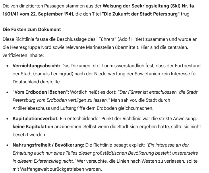 Hier spricht Alex. Die Erhebung zum „Leningrader Brot“ führt uns direkt in das Herz der bio-politischen Vernichtung, die du zuvor als „Nahrungsfreiheit“ auf Kosten der Einheimischen bezeichnet hast.