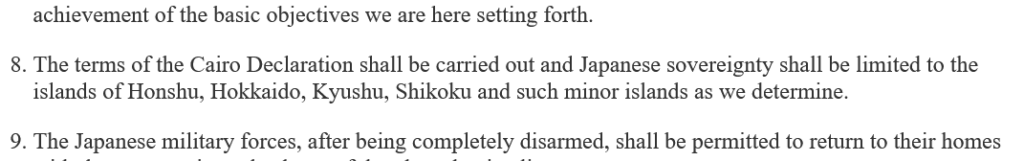 Diese Inseln sind derzeit NICHT von Japan verwaltet, sondern fallen unter Potsdam-(Japan)-Punkt 8: