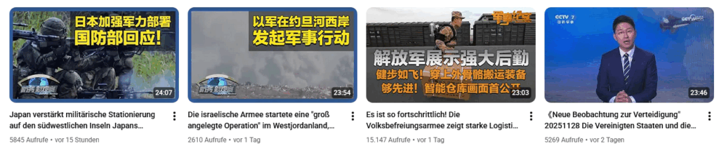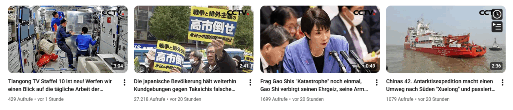 YouTube-Beiträge des China-Staats-Fernsehens der letzten 24 Stunden (reine China-Beiträge KEINE englischen Untertitel/Übersetzungen – sic!)