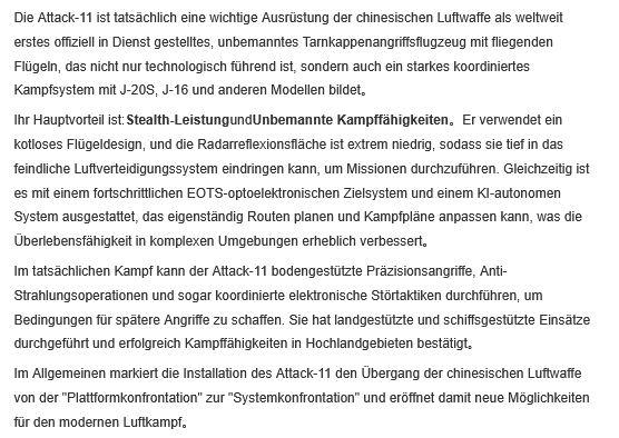Wettlauf um die loyalen Flügelmänner zwischen den USA und China: Die Volksbefreiungsarmee hat nacheinander die Attack-11 und die PHY-97A in Dienst gestellt.