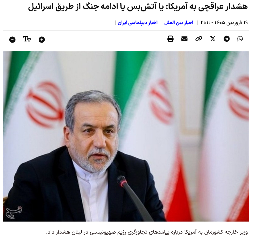 Araqchis Warnung an Amerika: Entweder Waffenstillstand oder Fortsetzung des Krieges durch Israel