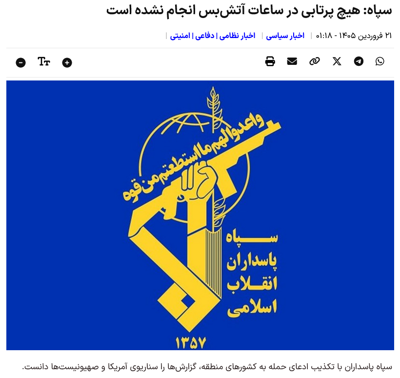 Die Revolutionsgarde wies die Behauptung eines Angriffs auf Länder der Region zurück und bezeichnete die Berichte als ein Szenario der USA und der Zionisten.