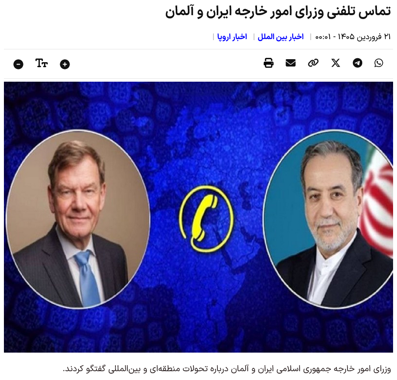 - Farvardin 1405 – 01:08 Uhr Internationale Nachrichten Iran Diplomatie
