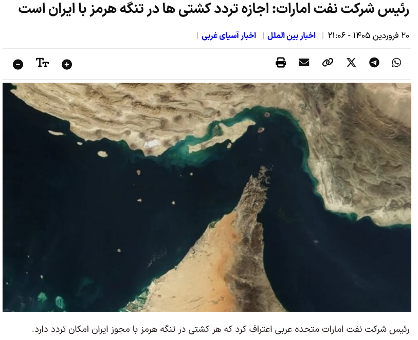 Der Chef der UAE Oil Company räumte ein, dass jedes Schiff mit iranischer Erlaubnis die Straße von Hormus passieren kann.