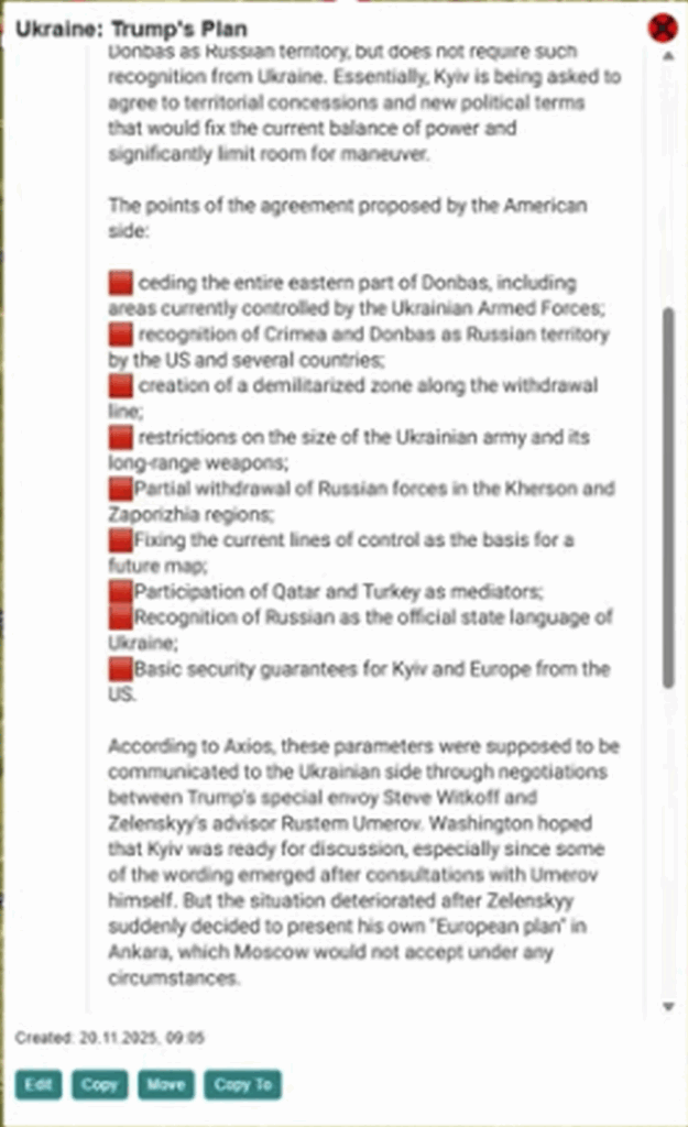 „Trump billigte Friedensplan zwischen Russland und der Ukraine“: Russland und die Vereinigten Staaten haben einen 28-Punkte-Friedensplan für die Ukraine erarbeitet; Kiew war an den Gesprächen nicht beteiligt. <<< RUS + US -???