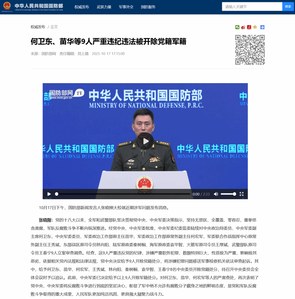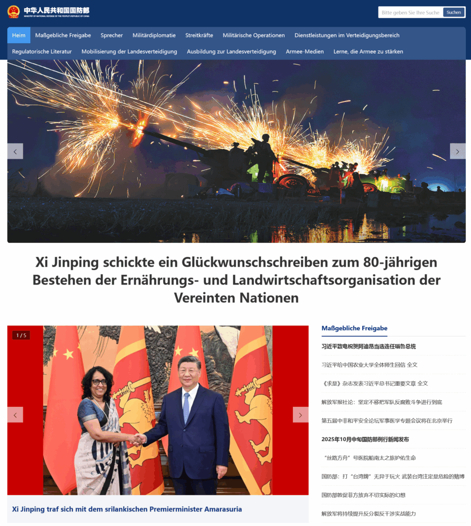 Quelle: Website des Verteidigungsministeriums, Herausgeber: Liu Shangjing, 17.10.2025, 17:15 Uhr