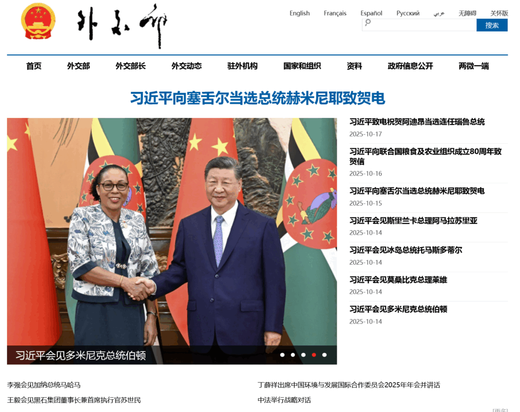 Aktuelle Website des Außenministeriums – ebenfalls 5-Bilder-Slideshow – 5x Xi Jinping